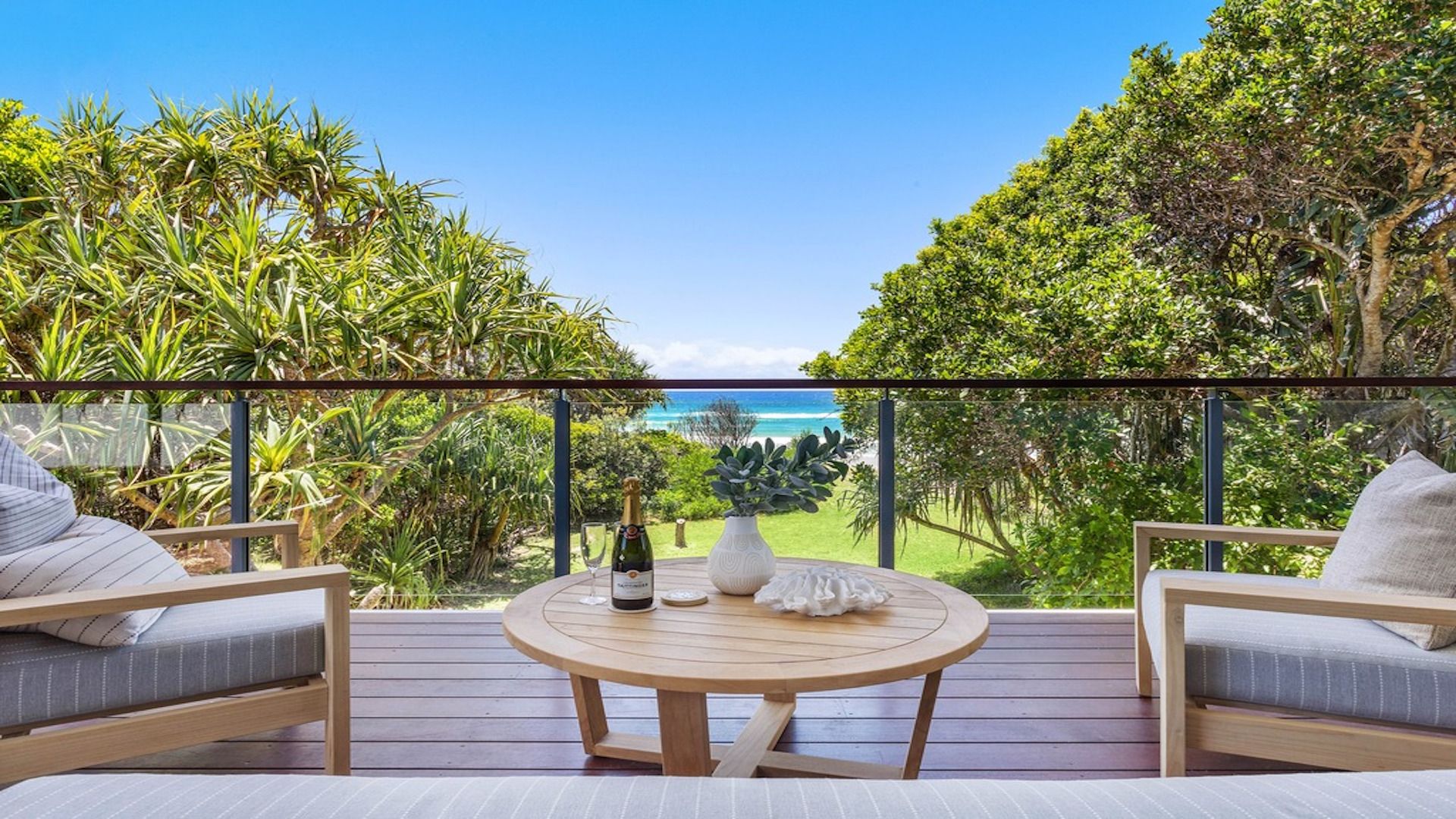 The interiors feature crisp, bright and modern spaces including a TV room, games room, living area and separate dining space adjoining the stylish gourmet kitchen. Accommodating up to 8 people with 2 bedrooms and a bathroom on each level, the property boasts a spacious entertainment deck overlooking the rolling surf. The private landscaped garden and walking track leading directly to the beach are standout features designed to enhance your stay.